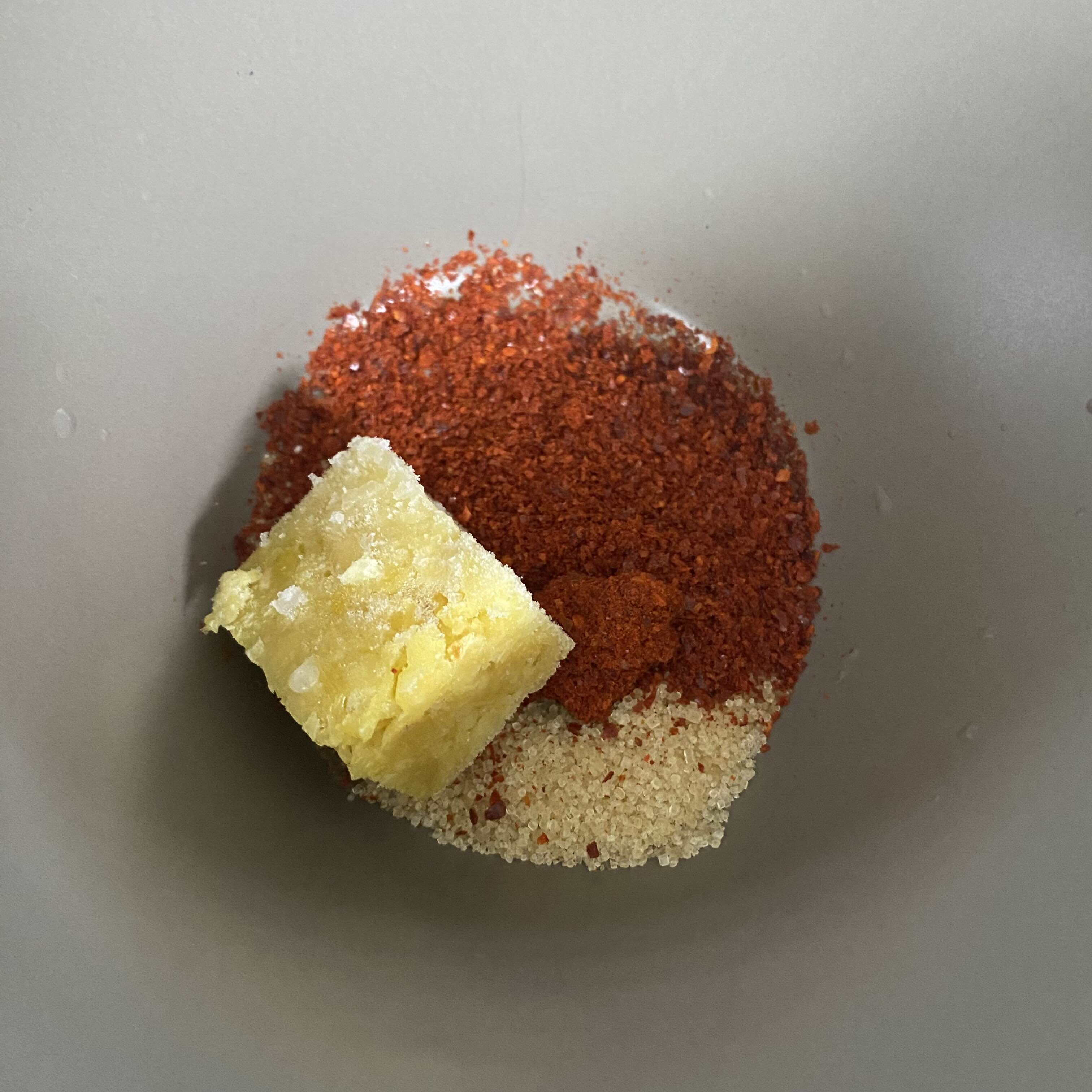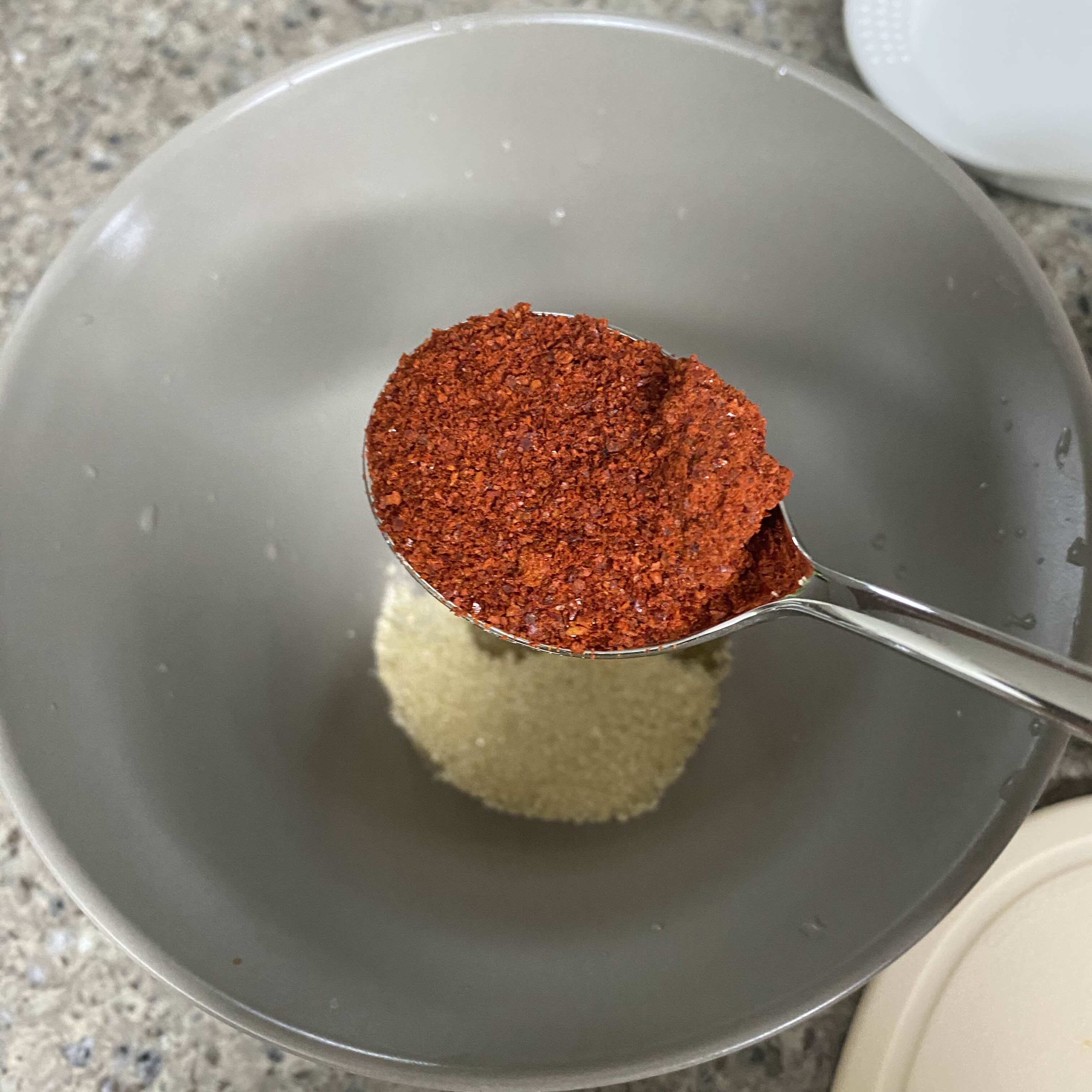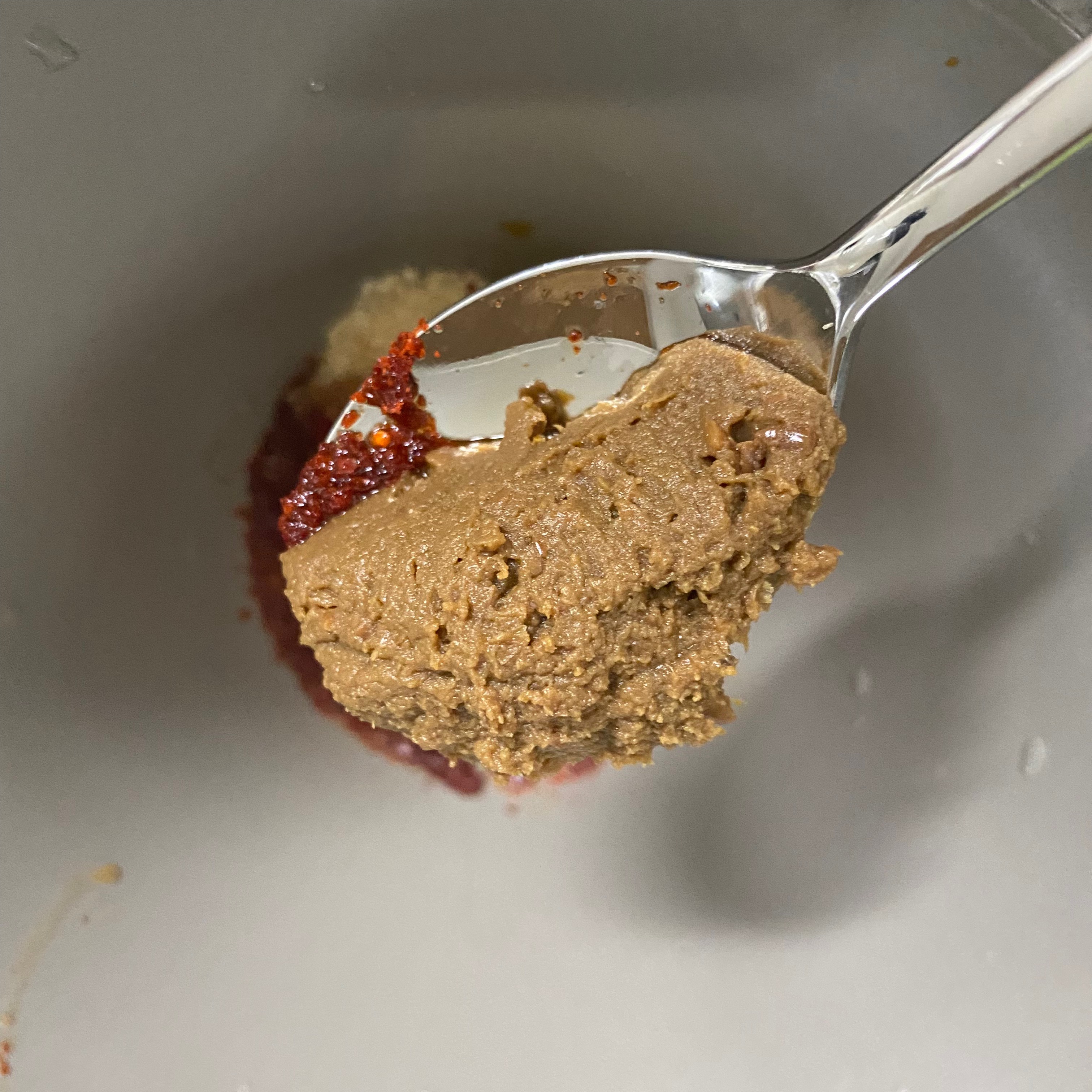 1. 설탕(30g), 국간장(20g), 된장(15g), 간 마늘(15g), 고춧가루(10g)를 섞어 양념장을 만든다.