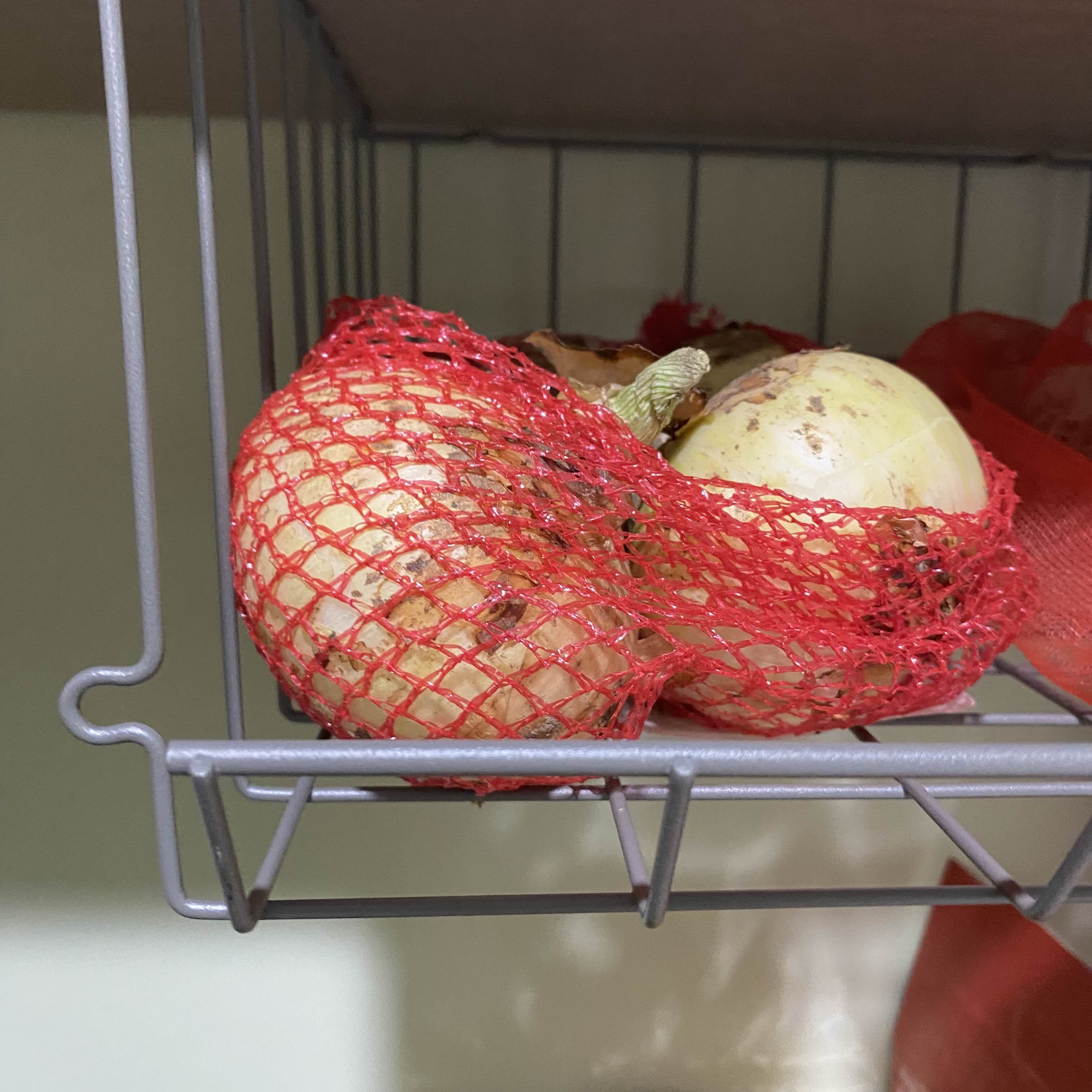 양파는 이케아 선반을 구매해서 통풍이 잘 되게 보관하고 있어요~ 양파 상태가 안 좋아지려고 할 때 냉장 보관하는 편입니다