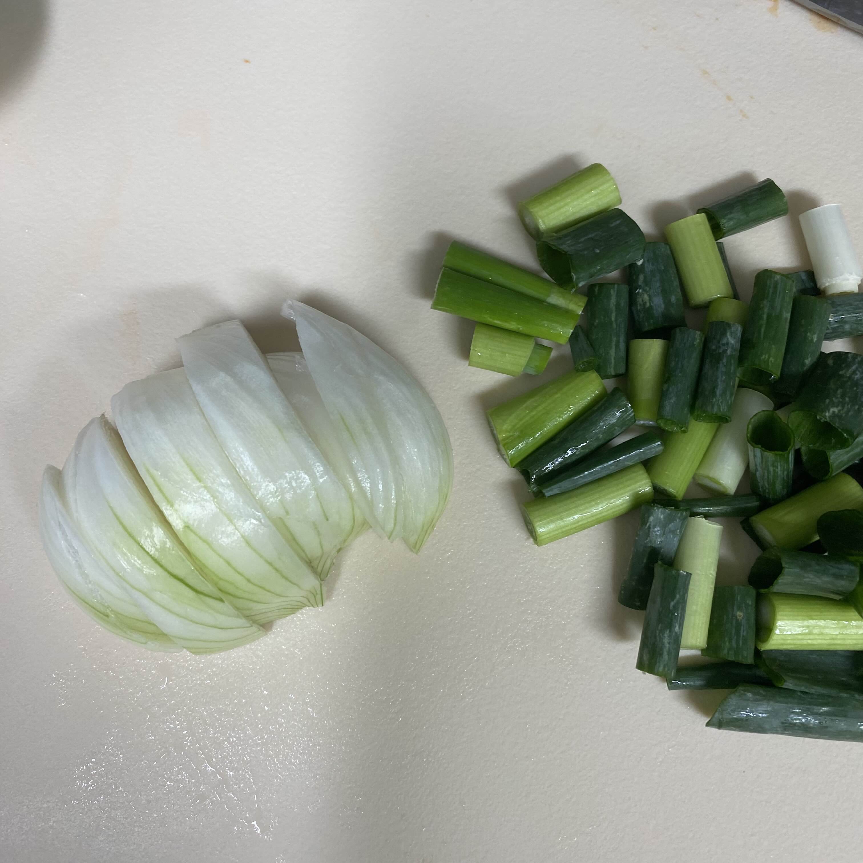 2. 양파(1/2개)는 굵게 채 썰고 대파는 송송 썬다.